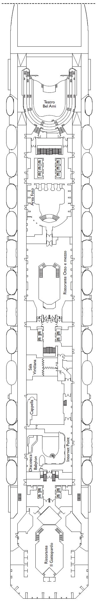 | Dekken: | Dek 6 Tancredi, Dek 7 Zivago , Dek 8 Marlene , Dek 9 Carmen | |